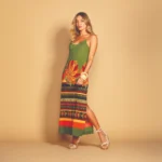 The Maná Knitted Dress offers a flattering, comfortable fit that moves with you. Its unique print and delicate strap details make it a standout piece for any summer occasion.